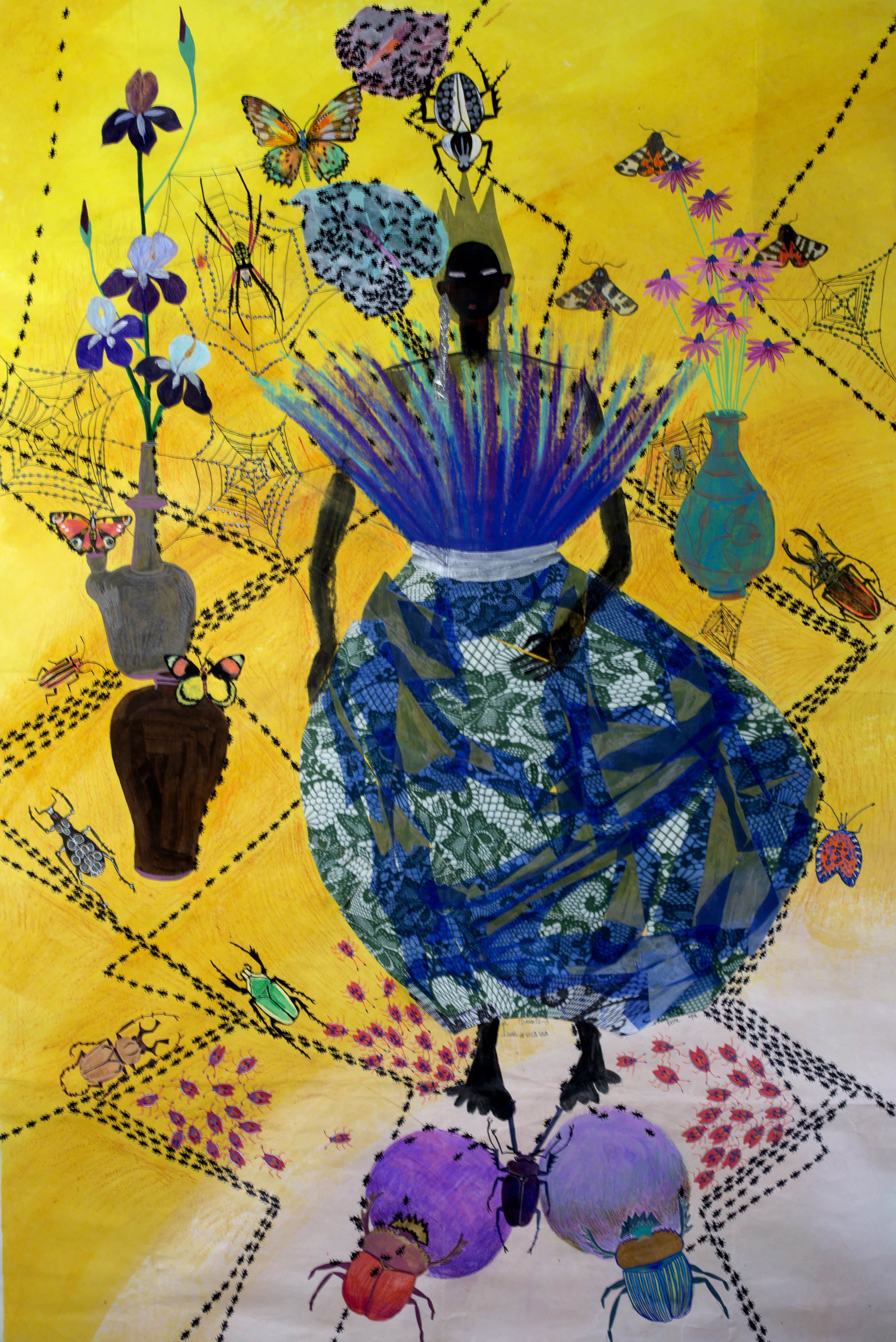Kim Soo Young is a Korean-born artist whose practice has been shaped by over two decades of immersion in French artistic traditions. Moving fluidly between fine art and fashion, she has developed a visual language that defies easy categorization — rooted equally in personal memory and cross-cultural experience. Her work draws from travels across West Africa, life in Europe, and the cultural heritage of Korea, weaving these influences into large-scale figurative paintings executed in mixed media on hanji, Korean traditional paper. At the center of her practice stands the figure of the Queen — not as symbol of power, but as embodiment of endurance, femininity, and the silent authority of those who carry the weight of the world.